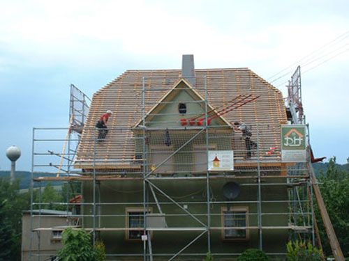 • Aufbringen der Aufsparrendämmung mit anschließender Verlegung der neuen Dachlattung